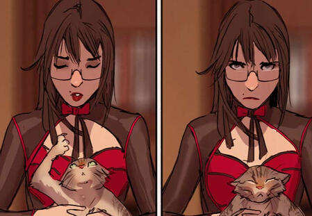 "Calm yourself, girl." You stop only because his claws are ripping into your corset and your skin. He moves you to sit in front of him, tall and big and a whole lot scary.